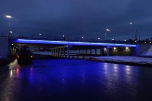 В Тольятти идёт монтаж подсветки путепровода на улице Революционной
