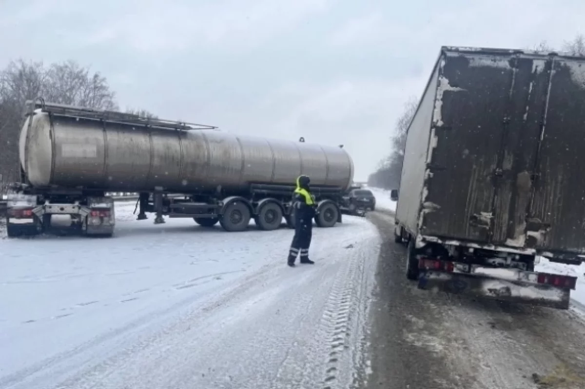 По предварительным данным Госавтоинспекции, около 12 часов на 1003-м километре автодороги водитель 1985 года рождения, управляя большегрузом Sitrak с полуприцепом-цистерной, не справился с управлением и врезался в барьерное ограждение.